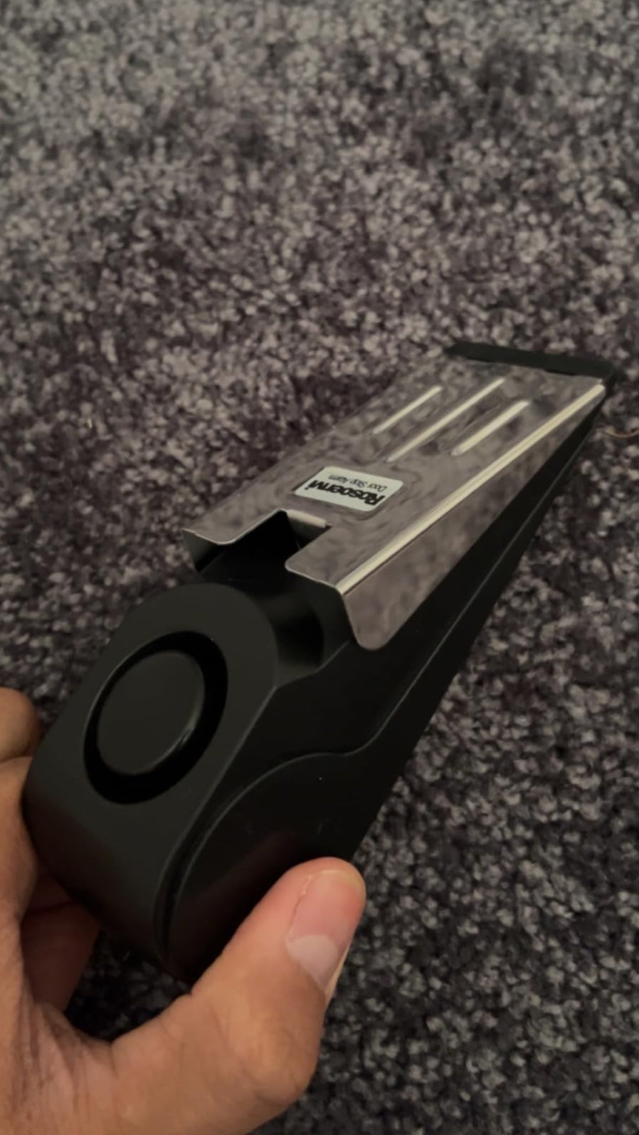 Este es un tope de puerta con alarma de 120 dB que impide el acceso y te avisa al instante. Sin instalación, fácil de llevar y con sensibilidad ajustable.