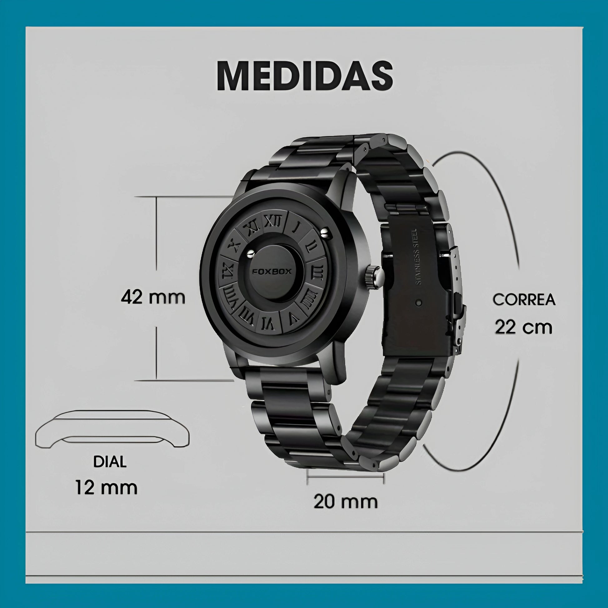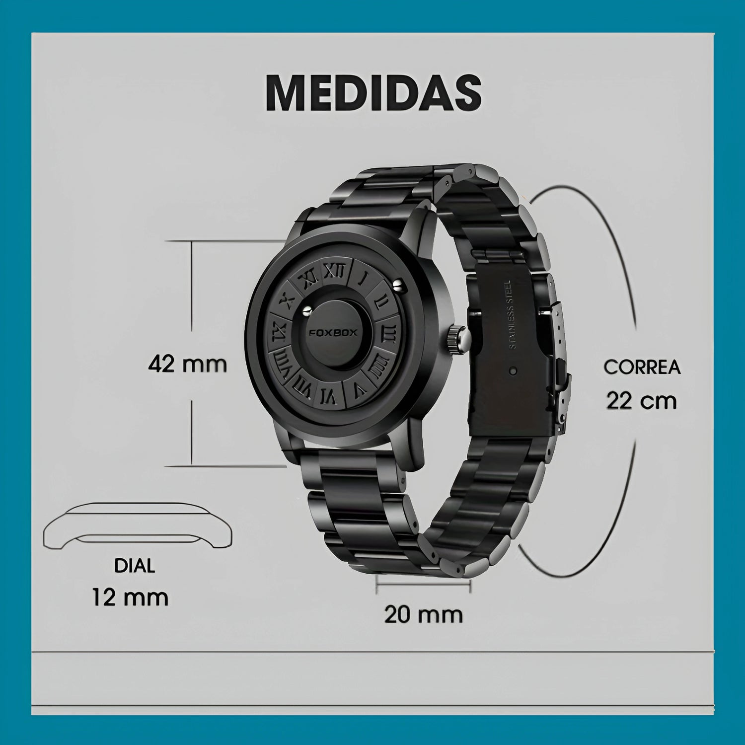 Te presentamos Foxbox, el reloj que rompe las reglas. Su innovador diseño con esferas magnéticas redefine la forma de leer la hora. La sofisticación del acero inoxidable hacen de este reloj una pieza única que destaca en cualquier ocasión.